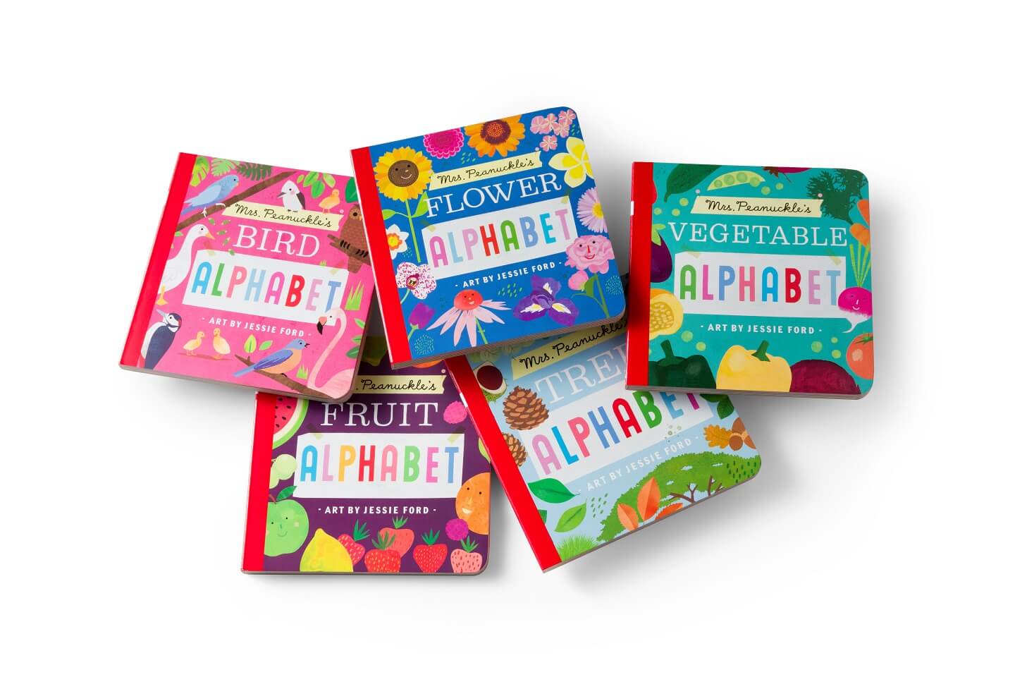 The Mrs. Peanuckle’s Alphabet series celebrates the joy nature brings to little ones at home and in the backyard. From fresh fruits to birds and trees, children and parents alike will love the charming ABC illustrations. Titles include: Bird Alphabet, Flower Alphabet, Fruit Alphabet, Tree Alphabet, and Vegetable Alphabet.
